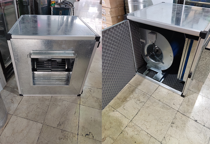 باکس سایلنت یا باکس فن جهت محیط های که صدا و آلودگی حائز اهمیت است از باکس سایلنت استفاده میشود باکس سایلنت تشکیل شده از سانترفیوژ و باکس که دیوارهای باکس به صورت تک جداره و دوجداره با صدا گیر جهت صدا گیری و سایلنت بودن استفاده می گردد ، همچنین در محیط هایی که نیاز به فیلتر برای جمع آوری آلودگی یا گرد و غبار باشد از باکس سایلنت فیلتر دار یا باکس فیلتر استفاده میشود که باکس سایلنت از ظرفیت 500 متر مکعب درساعت الی 170000 مترمکعب درساعت و یا بالاتر به سفارش ساخته میشود.
